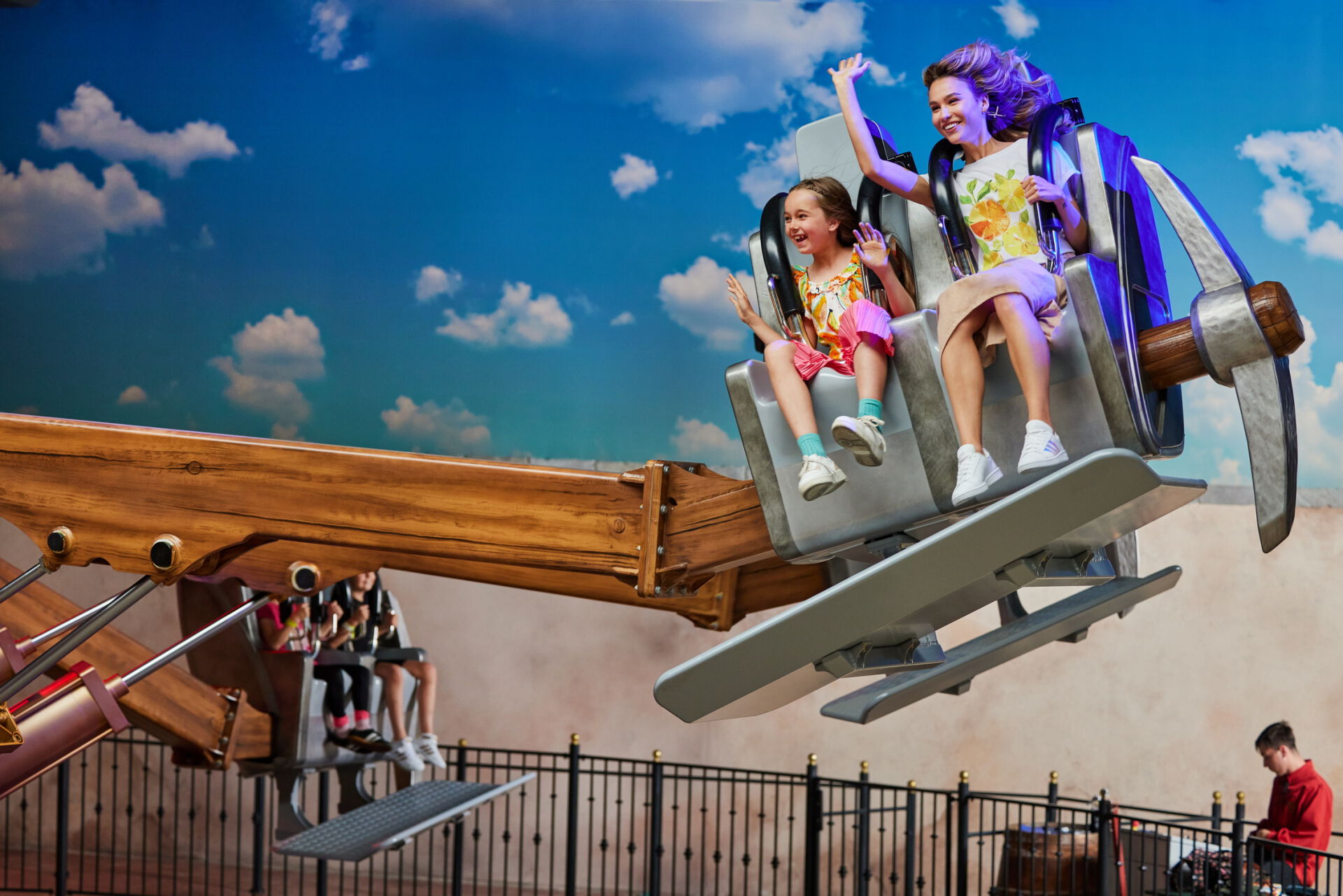• Oprócz głównych atrakcji i licznych gier zręcznościowych, Goście mogą skupić się na odkrywaniu tajemnic Mandorii, a w międzyczasie udać się po przekąskę do Abu Cafe czy Tawerny Trzy Dzwony